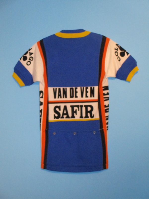 Voor het product SAFIR (e)-VAN DE VEN-COLNAGO 1985 WIELERSHIRT uit 1984/1985 van de ploeg SAFIR (BELGIE) is de werkwijze hier terug te vinden.